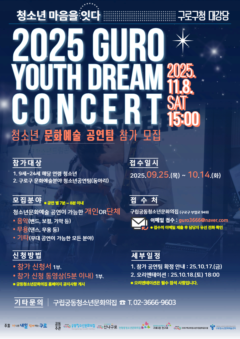 2025년 구로청소년드림콘서트 참가 청소년 문화예술 공연팀(동아리)를 모집합니다!!