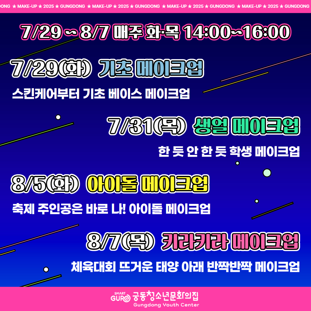 - (4회차) 키라키라메이크업: 8/7(목) 14:00 ~ 16:00